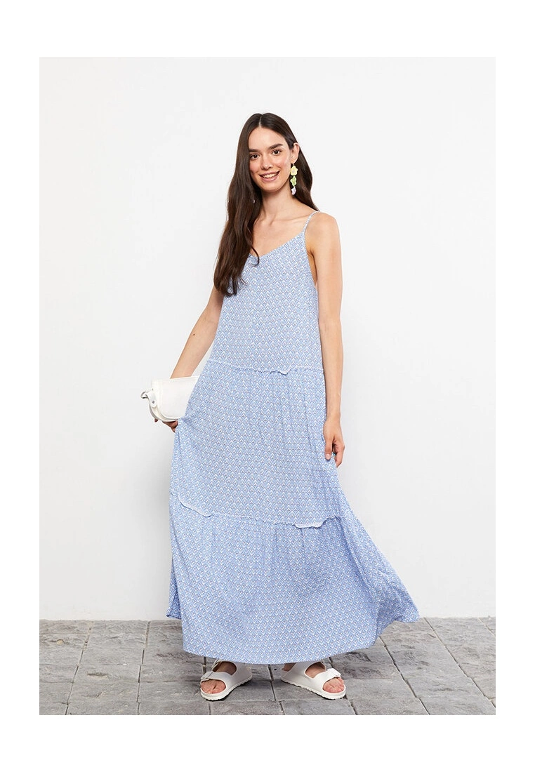 LC WAIKIKI Heart Collar Floral Strap Crinkle Women’s Dress